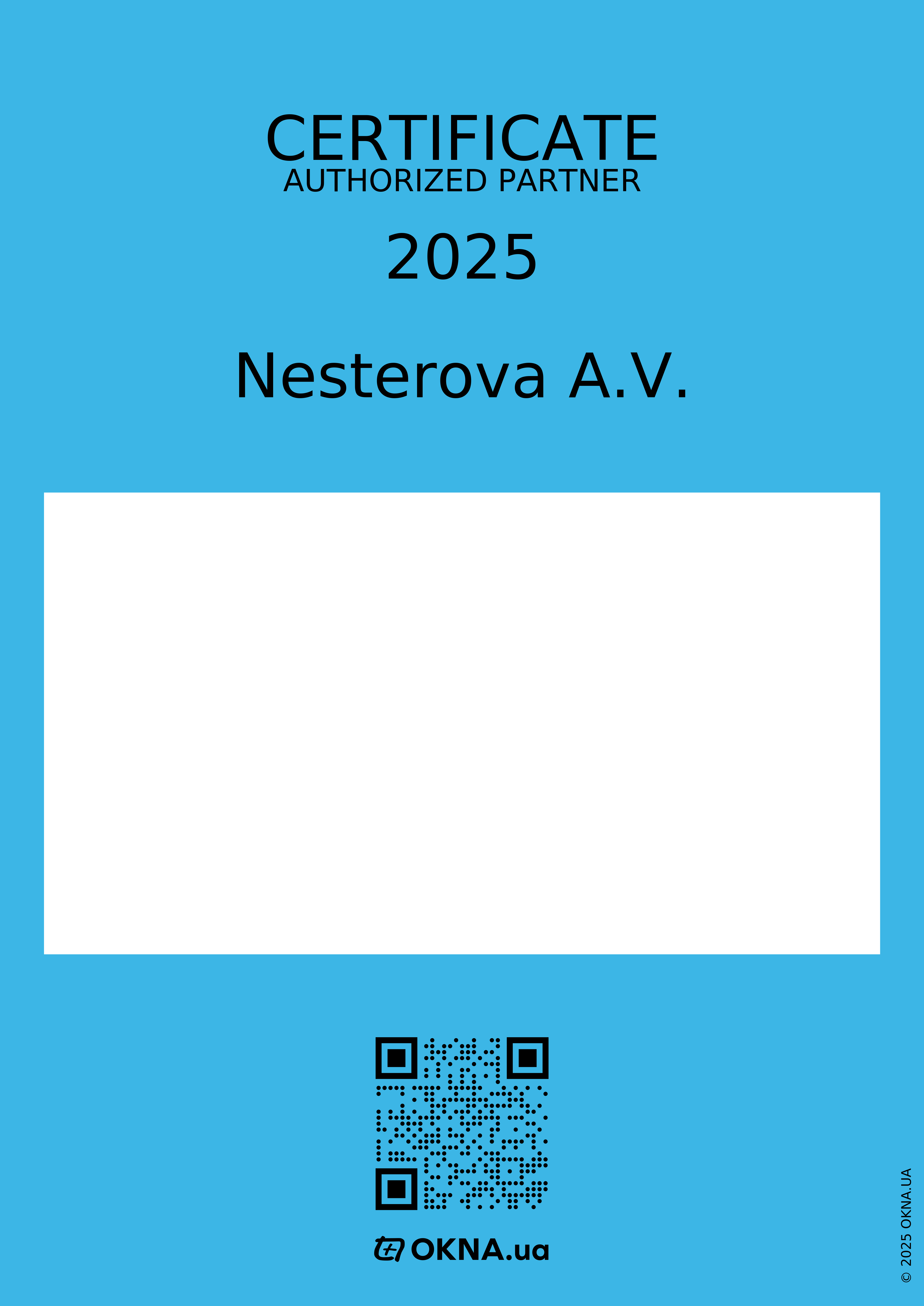 The certificate is declared by the company Nesterova A.V.