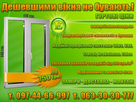 | Pryvatnyy MaysterПриватний Майстер м. Червоноград. Металопластикові вікна та двері. WDS, KBE, Trocal, Brokelman, Lider. Засклення балконів, лоджій, вхідні двері металопластикові (для магазинів та офісів), не стандартні вікна різних кольорів та форм (трикутні, трапеції, арки). Заміри – Доставка – Монтаж - Сервісне обслуговування. |