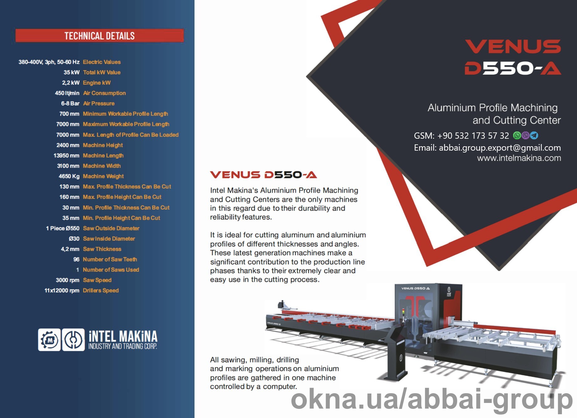 VENUS D550-A - PVC and Aluminium profile machining center