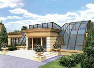 ограждающие конструкции выполнены полностью из стекла.