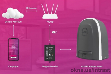 ALUTECH ROTEO SMART працює через застосунок Alutech Smart і дає змогу контролювати ворота зі смартфона. Привід AN-MOTORS ARW підтримує точне зупинення стулки завдяки механічним та магнітним кінцевим вимикачам. Пластикова рейка ROA8-PL забезпечує тихий хід навіть під час інтенсивного використання.