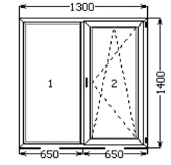 Окно 2-створч. 1400х1300 мм поворотно-откидное