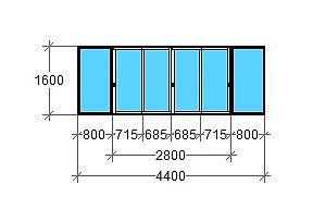 двойной скользящий Тандем. Общая ширина балкона 4400 мм (фронтальная часть 2800 мм, боковые части по 800 мм), высота 1600 мм. Стоимость с учетом монтажа