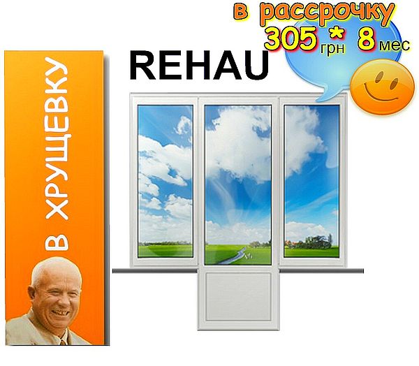 Балконный блок "Чебурашка" для остекления выхода на балкон в "Хрущевке". REHAU euro 60, фурнитура MACO, энергосберегающий стеклопакет. Цена в Одессе 1971 грн.