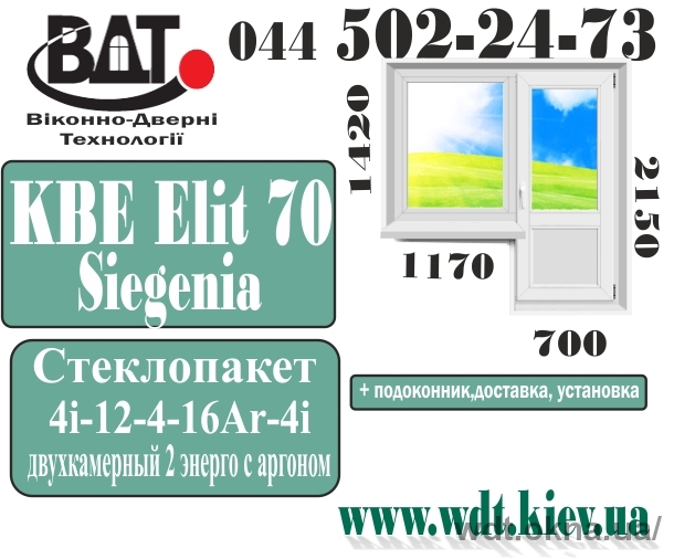 Профильная система: КВЕ Элита 5 камер, монтажная ширина - 70мм.