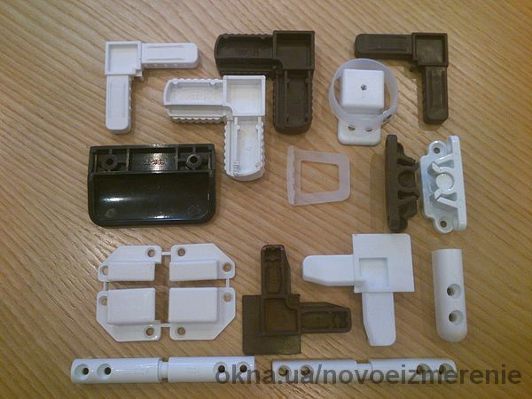 Дверная серия профиль 17х25, Оконная серия Анвис 11х32, Оконная серия 10х20. Производим углы соединительные, карманы креплений, петли навесные и защёлки для 17х25 и 10х20, ручки для дверных и оконных сеток, ручки кольца, ручки прозрачные под шнур.