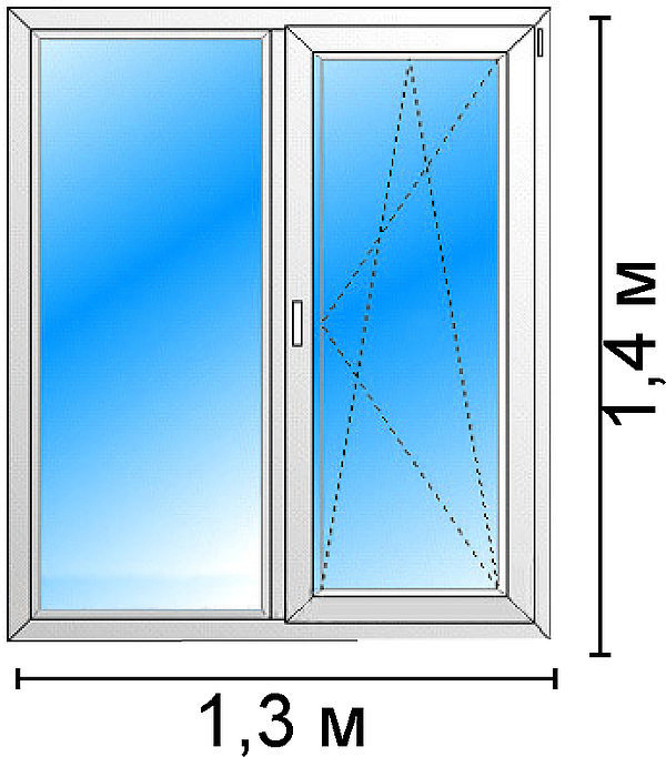 Окно 1,3 м х 1,4м из немецкого пятикамерного профиля Aluplast с одной поворотно-откидной створкой.