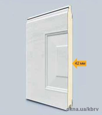 Полотно: товщиною 42мм, з захистом від защімлення пальців ззовні та з середини воріт (європейський патент), панелі з стальних секцій з покриттям Decograin, виготовлені з гарячеоцинкованої сталі, заповнені вспіненим поліуретаном.