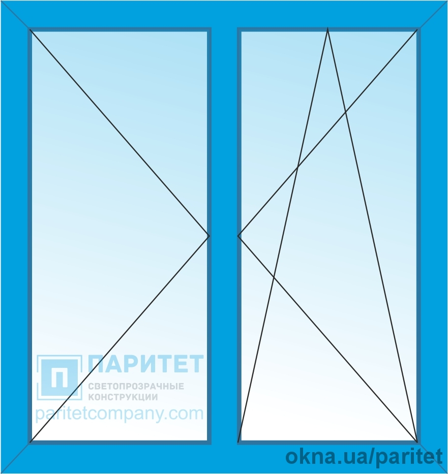 Двустворчатое окно - самый популярный вариант остекления жилых помещений и средних по размеру оконных проемов. Правая створка этого окна имеет функцию откидывания верхней рамки и открывается в левую сторону, а левая открывается только с сторону.