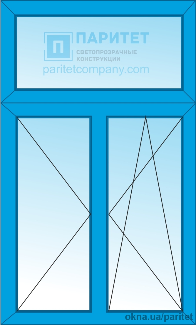 Т-образное двухстворчатое левое поворотное – правое поворотно откидное окно Эконом