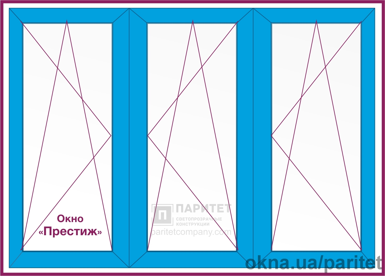 Трехстворчатые окна - очень популярный вариант для застекление больших оконных проемов, а так же установки для лоджии. Ширина створок может различаться.