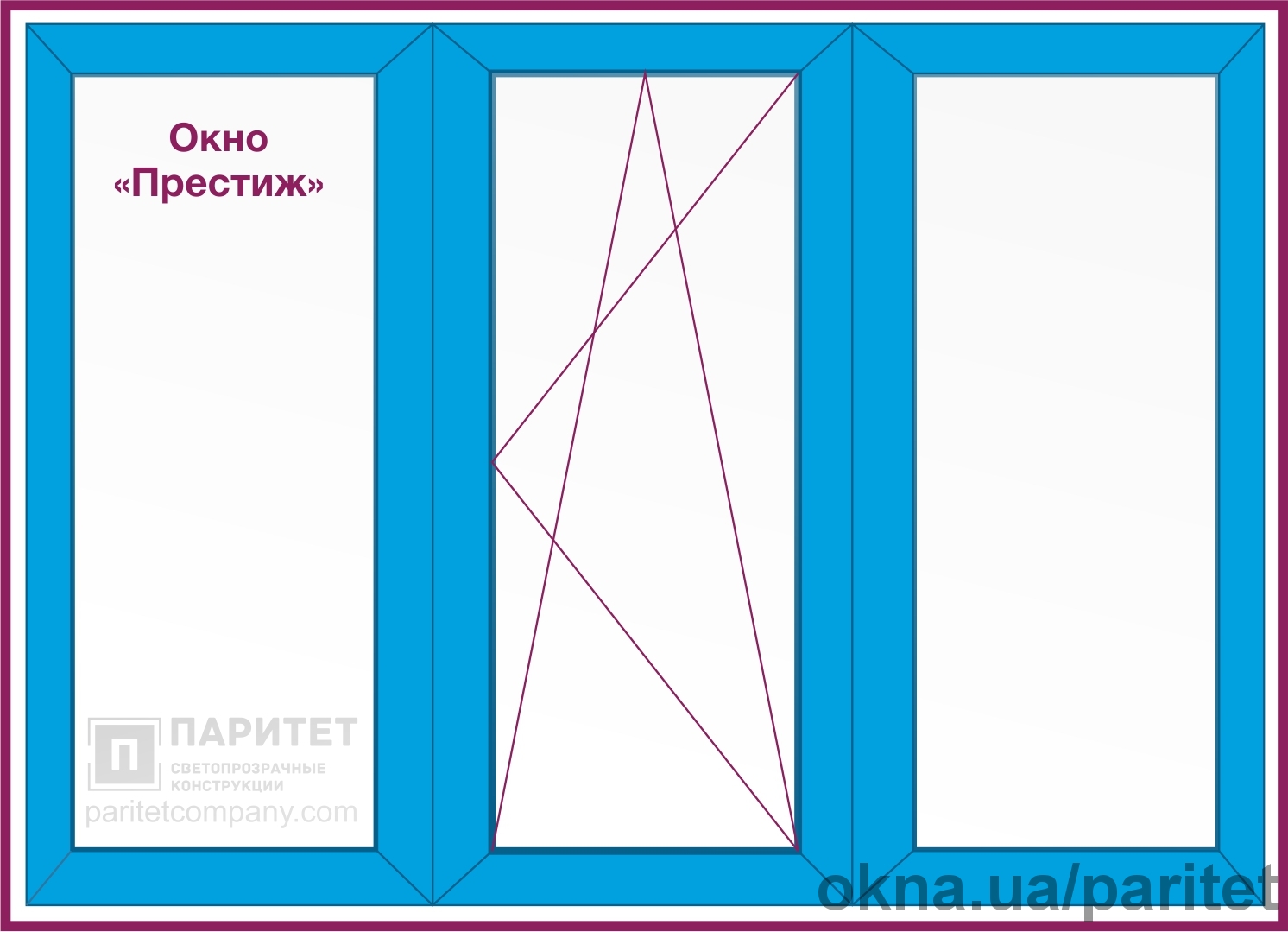 Трехстворчатое глухое – правое поворотно откидное – глухое окно `Престиж`