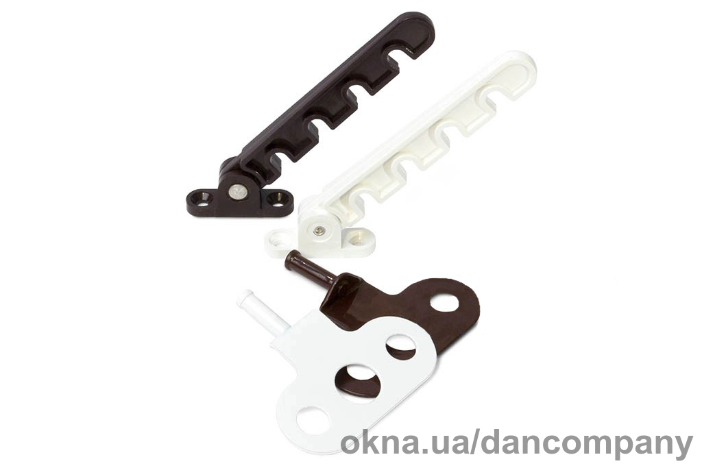 Ограничитель открывания окна гребенка выполнен из пластика длиной 110 мм на четыре позиции коричневого цвета и окрашенной платой под ручку. Данная гребенка предназначена для пластиковых окон и балконных дверей. С помощью оконных ограничителей можно фиксировать створку окна или двери в открытом положении от 2 до 8,5 см.