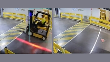 Камера спостереження з технологією ШІ виявляє порушення — навантажувач не зупинився на позначеній лінії