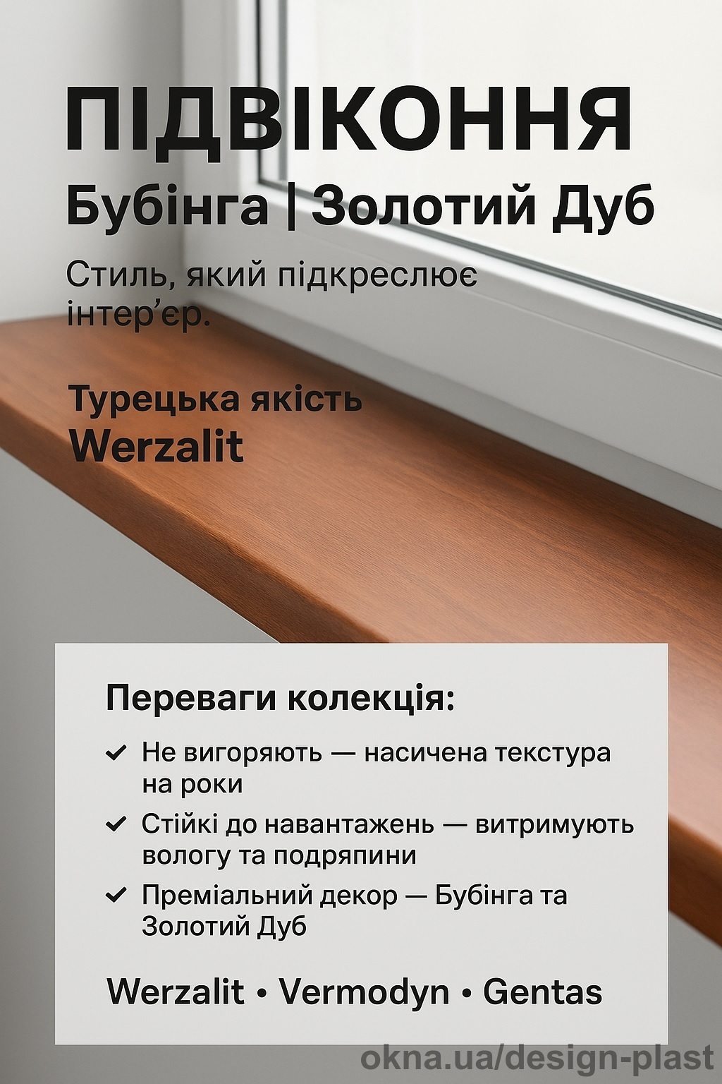 Компанія Дизайн Пласт ТМ пропонує усю лінійку підвіконь Vermodin Gentas, Туреччина.